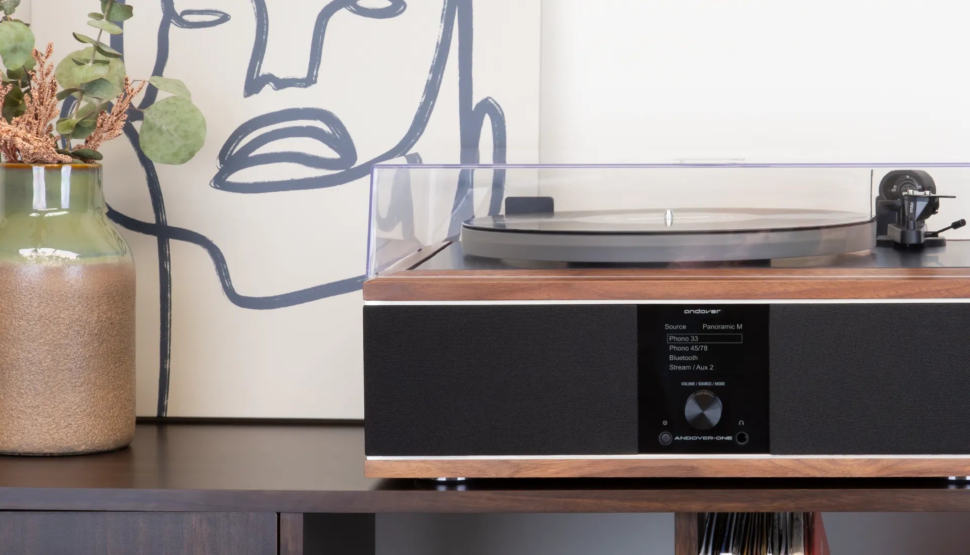 The Andover-One Premier integrates the Andover Record Player, Upper Stand, and Subwoofer into a compact, audiophile-grade system, delivering full-spectrum sound with built-in LP and drawer storage.